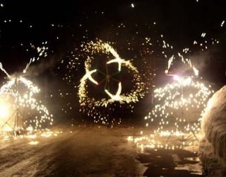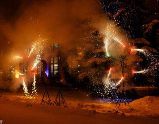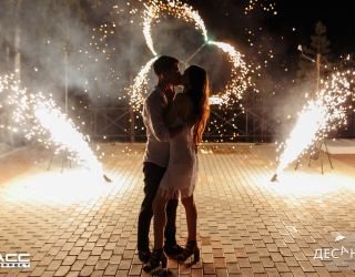 Калейдоскоп состоит из 6 тяговых фонтанов вращаюхся по 3 шт в разных направлениях. Добавляет динамики пиротехническому шоу.