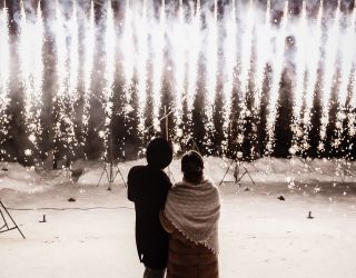 Необычный, наземный фейерверк, который так же станет удивительным по красоте фоном для чего-то особенного на Вашем торжественном вечере, танца молодых, преподнесения подарка, выноса торта или только еще предложения руки и сердца своей половине. Золотой или серебрянный блеск, словно настоящие звезды полетит на землю, остается только загадать желание и наслаждаться красотой момента.
