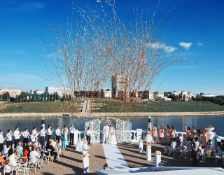 Выстрелы конфетти и серпантина обеспечивает залповая пневматическая установка — пневмовеер (проф.). Выстреливает: конфетти, серпантин, лепестки роз, банкноты, шарики и другие материалы. Выброс заряда осуществляется до 20-30м. Пятиствольная установка калибром 50 мм. Выстрел производится из пяти стволов одновременно или по одному стволу. Не требует электропитания. Время работы: до 15сек.